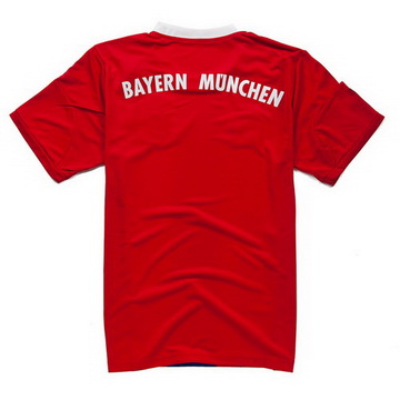 La camiseta consta de tres rayas azules y dos rojas. Dentro de esas rojas habrá una azul muy fina. Las clásicas tres rayas de Adidas de los hombros, así como el cuello y las mangas, siguen siendo blancos, creando así una bonita combinación de los tres colores del laureado club alemán. En la parte posterior de la camiseta, bajo el cuello, encontramos el lema “Mia san mia”, que se traduce como “Somos lo que somos”.